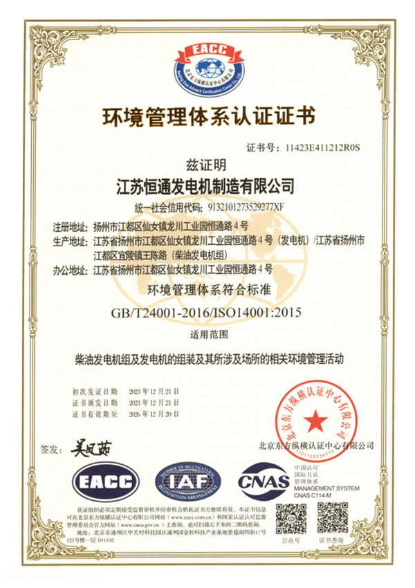 Honorary Qualification of Hengtong Generator